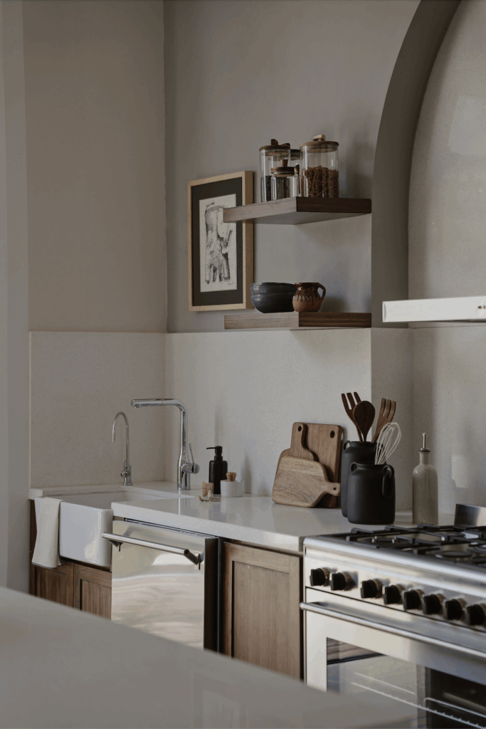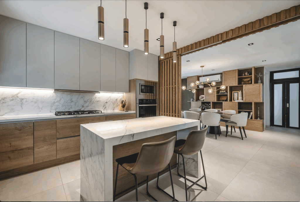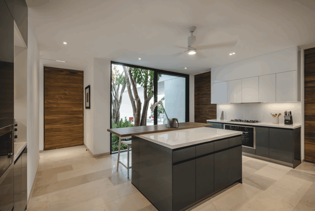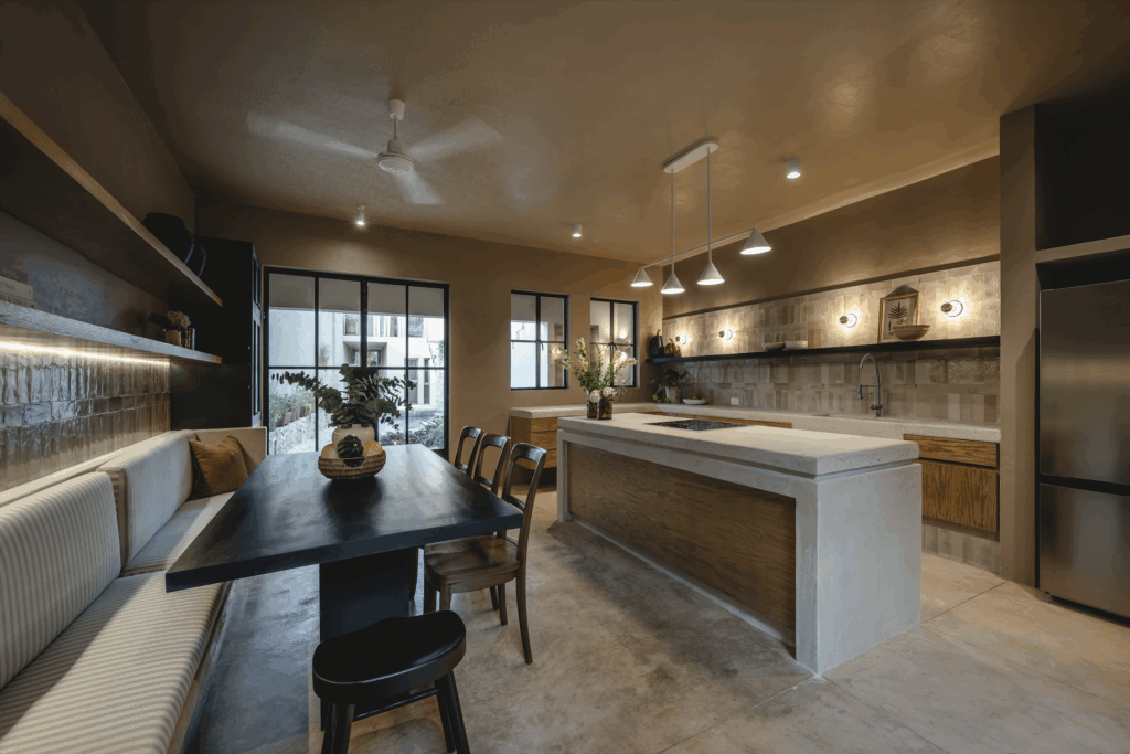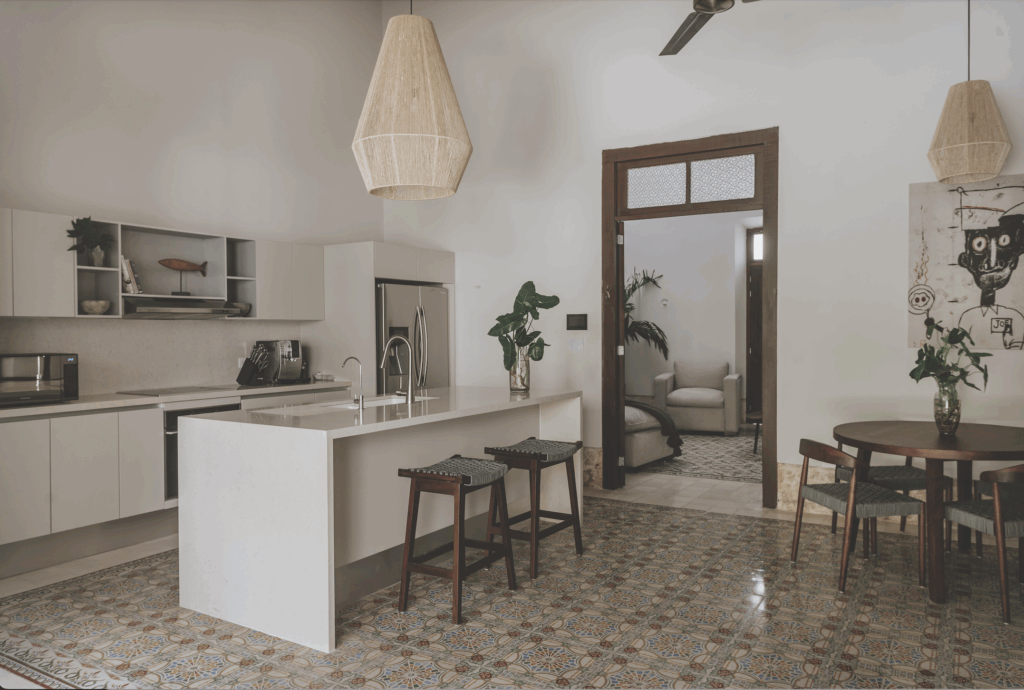 En cocinas para el tipo de climas con el que estamos trabajando, la estética no puede separarse de la funcionalidad. Los tonos claros y neutros ayudan a reflejar la luz y reducir la percepción de calor, mientras los acentos en madera y los recubrimientos inspirados en la arquitectura local aportan identidad y calidez. Esta combinación permite que la cocina dialogue con el contexto arquitectónico sin perder adaptabilidad a estilos contemporáneos. La integración de elementos tradicionales con soluciones modernas —como iluminación indirecta, electrodomésticos empotrados y mobiliario modular— permite maximizar la eficiencia sin comprometer el diseño.