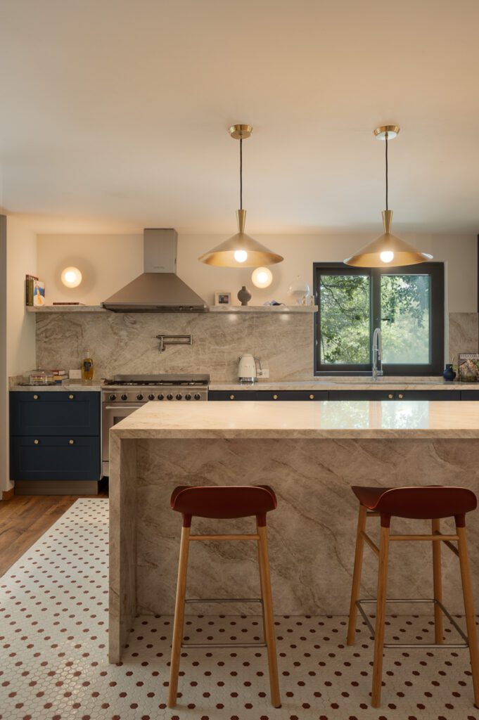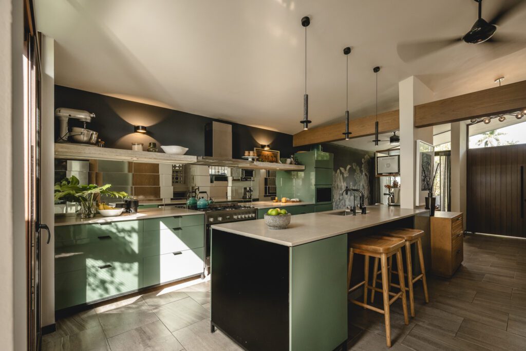 Acompañada de bases neutras o materiales naturales, la isla de color aporta carácter, calidez y un punto focal que estructura la experiencia cotidiana.
