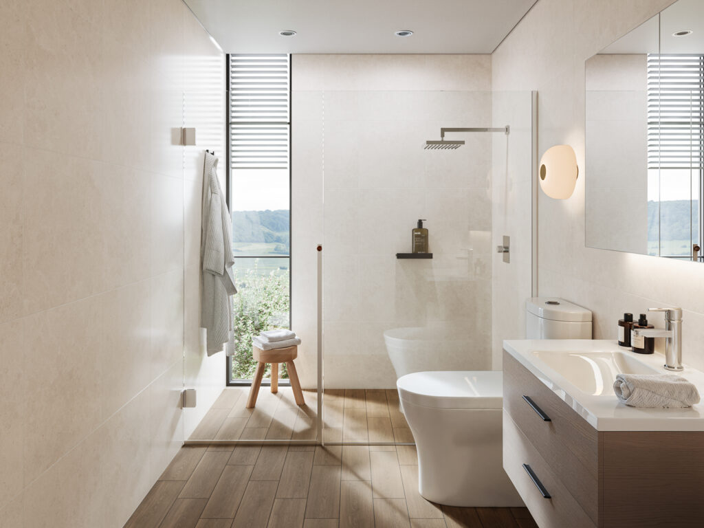 La iluminación estratégica es clave: luz general combinada con focos puntuales en espejos aumenta la claridad y permite generar distintas atmósferas. Los muebles flotantes liberan el piso, aportan ligereza visual y facilitan la limpieza. Mantener al menos 15 cm de espacio libre debajo de los muebles ayuda a que el baño respire y se perciba más amplio.