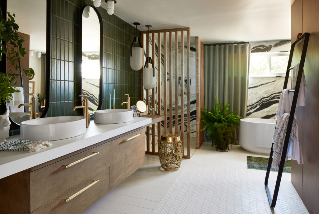 Si tu baño cuenta con paisajes exteriores, coloca la tina en un punto estratégico para disfrutar del entorno mientras te relajas.
