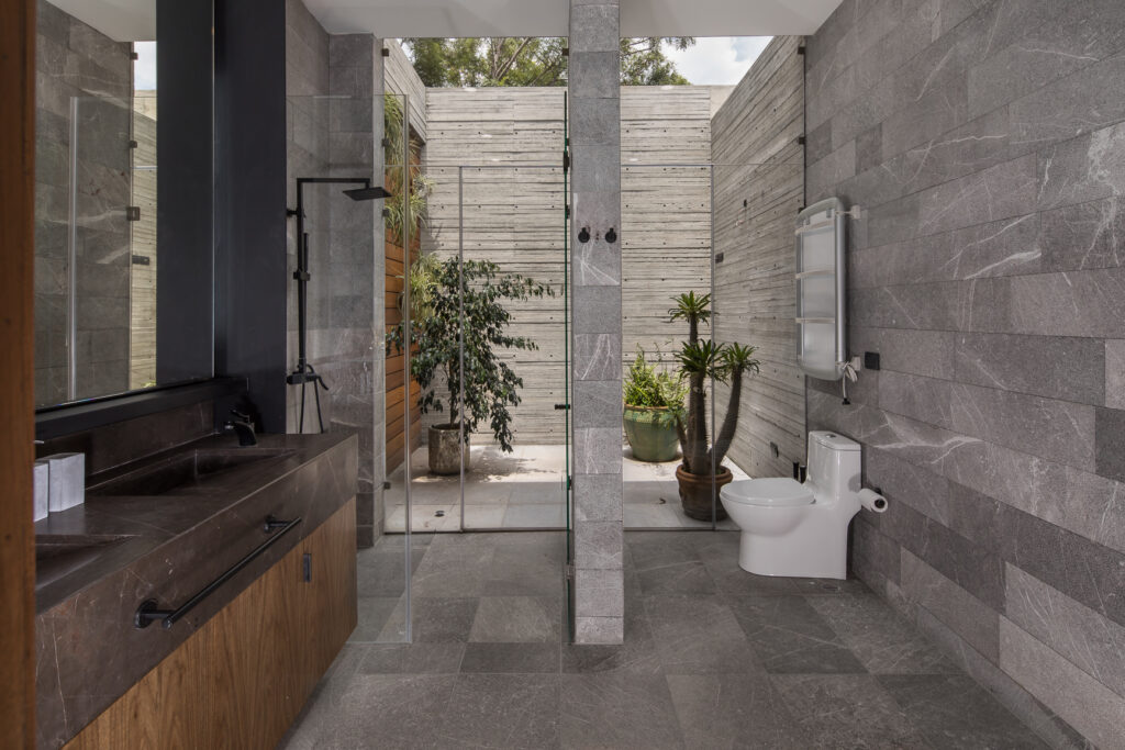 Privatiza el área de ducha y sanitarios para lograr una imagen limpia y organizada, separando zonas de uso sin perder estilo.