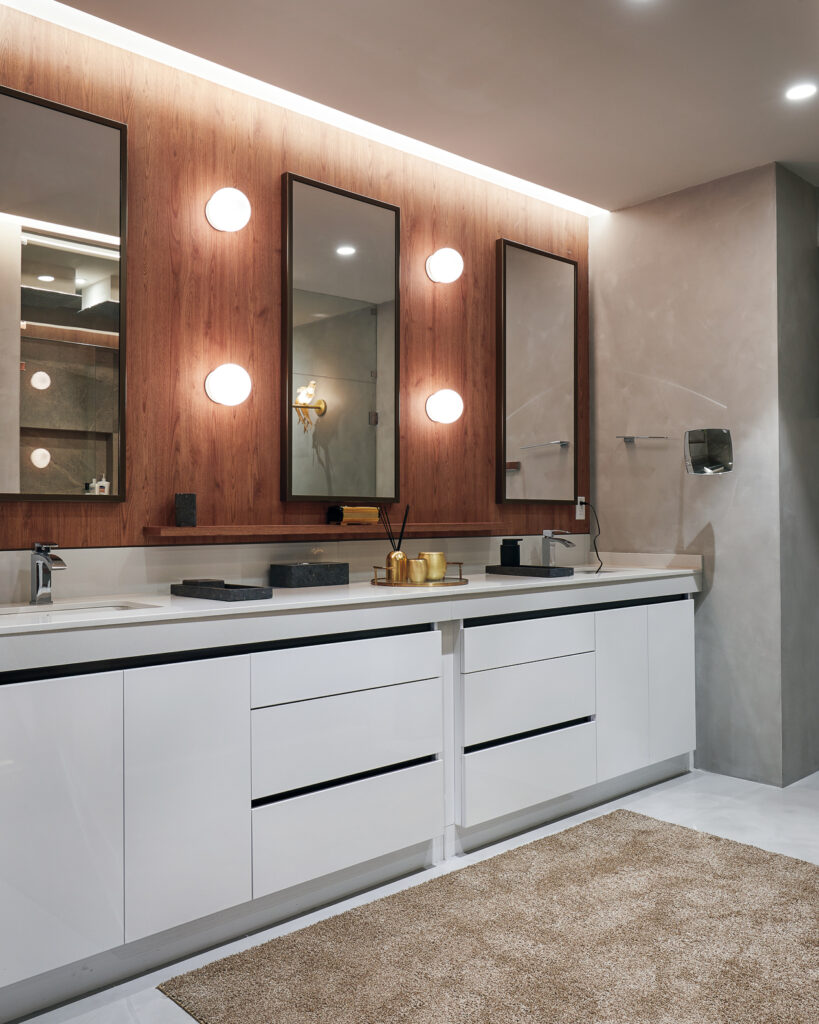 Si el espacio lo permite, agrega un área de arreglo personal con buena iluminación para maquillaje y accesorios de aseo.