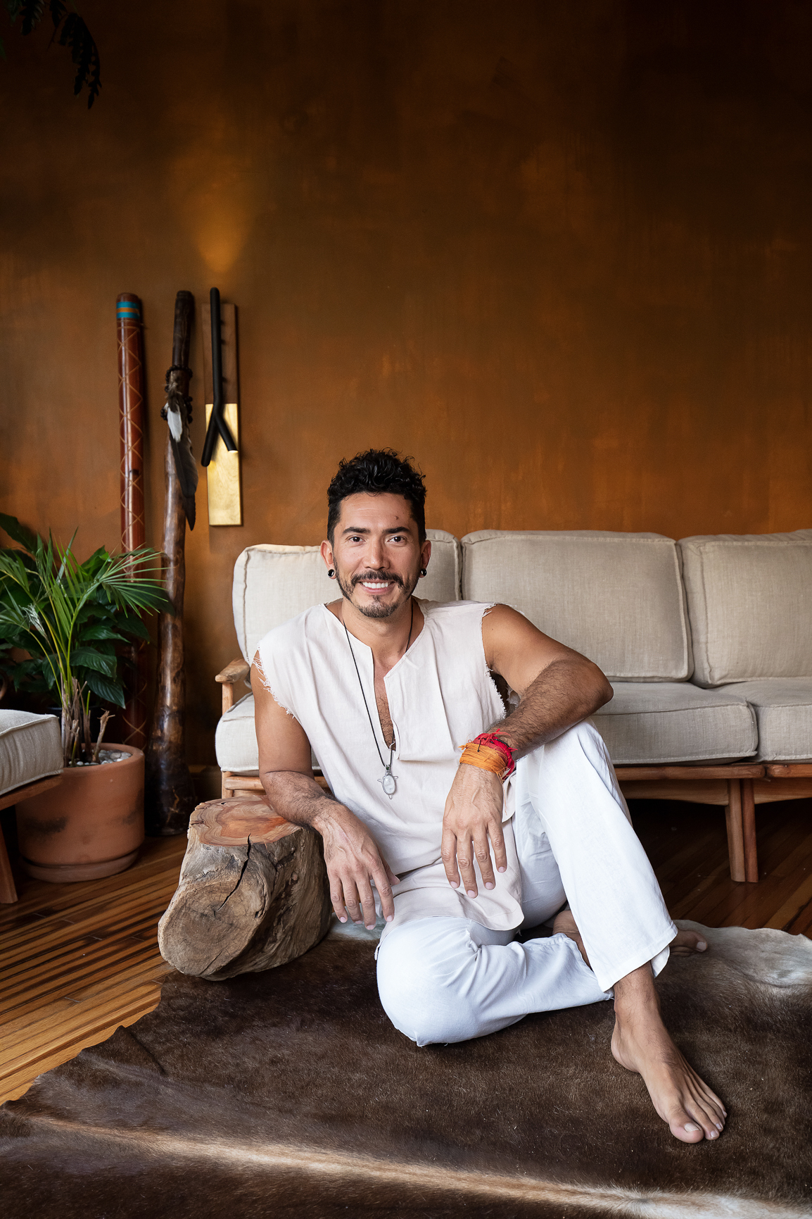 Arquitecto, diseñador y agente de cambio socioambiental, Adán Cárabes entiende la arquitectura como un acto de regeneración. Desde su infancia —dividida entre la Ciudad de México, Michoacán y Guerrero— desarrolló una sensibilidad por la naturaleza, la materia y el color que hoy define su práctica. Graduado con honores de Arquitectura por la Universidad La Salle, su trayectoria comenzó con una etapa marcada por el arte y la danza, como integrante de la Compañía Nacional de Danza Folklórica de México, experiencia que transformó su manera de concebir el espacio y el movimiento. A lo largo de su carrera ha desarrollado proyectos residenciales, gastronómicos y de hospitalidad que reflejan una visión sensible, técnica y profundamente