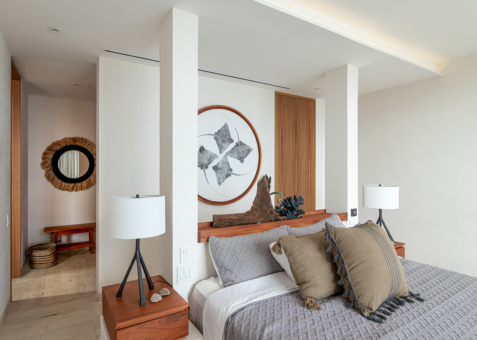 Casa Manta Raya es un proyecto integral de Proyectos Paraíso, estudio liderado por Adán Cárabes, donde la arquitectura se concibe como un acto de regeneración. Ubicado entre el mar Caribe de Cozumel y el Club de Yates de Fonatur, el proyecto despliega la visión camaleónica del estudio: arquitectura interior, mobiliario, carpintería, iluminación, acabados, arte, estilismo y atmósferas concebidas como un solo sistema. La relación estrecha entre el equipo y los clientes —a quienes llama amigos— permitió construir un programa claro y un diagrama de flujo íntimo, donde cada espacio responde a formas personales de vivir.