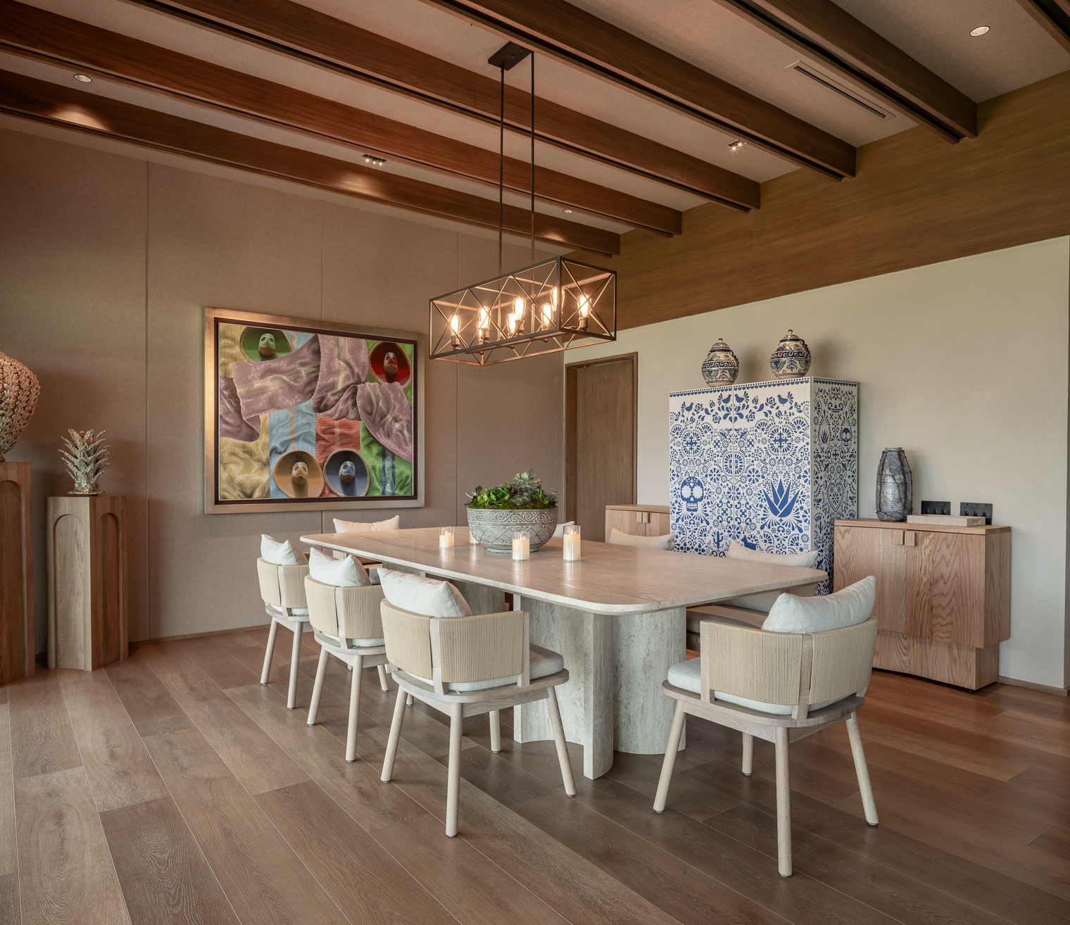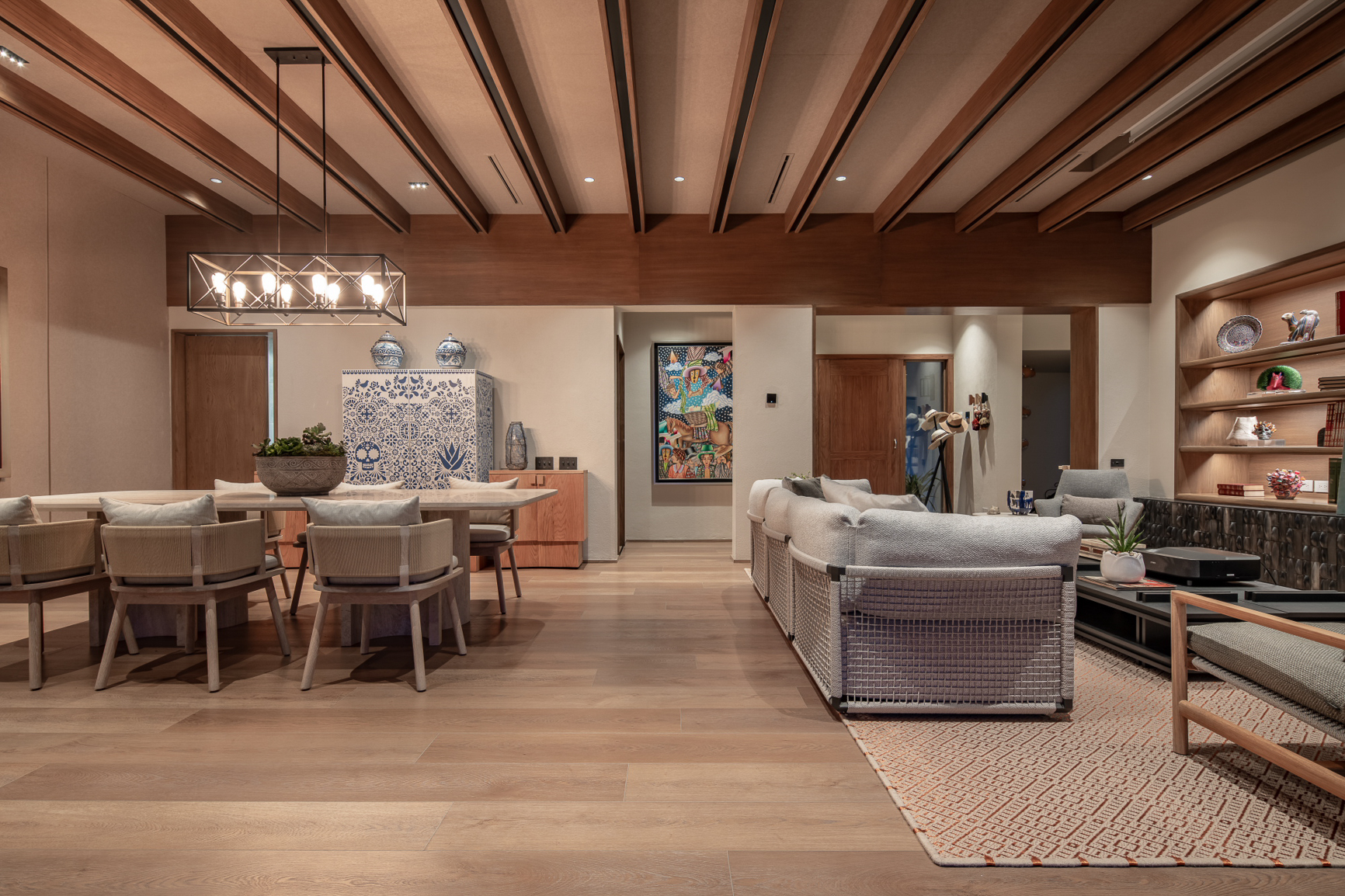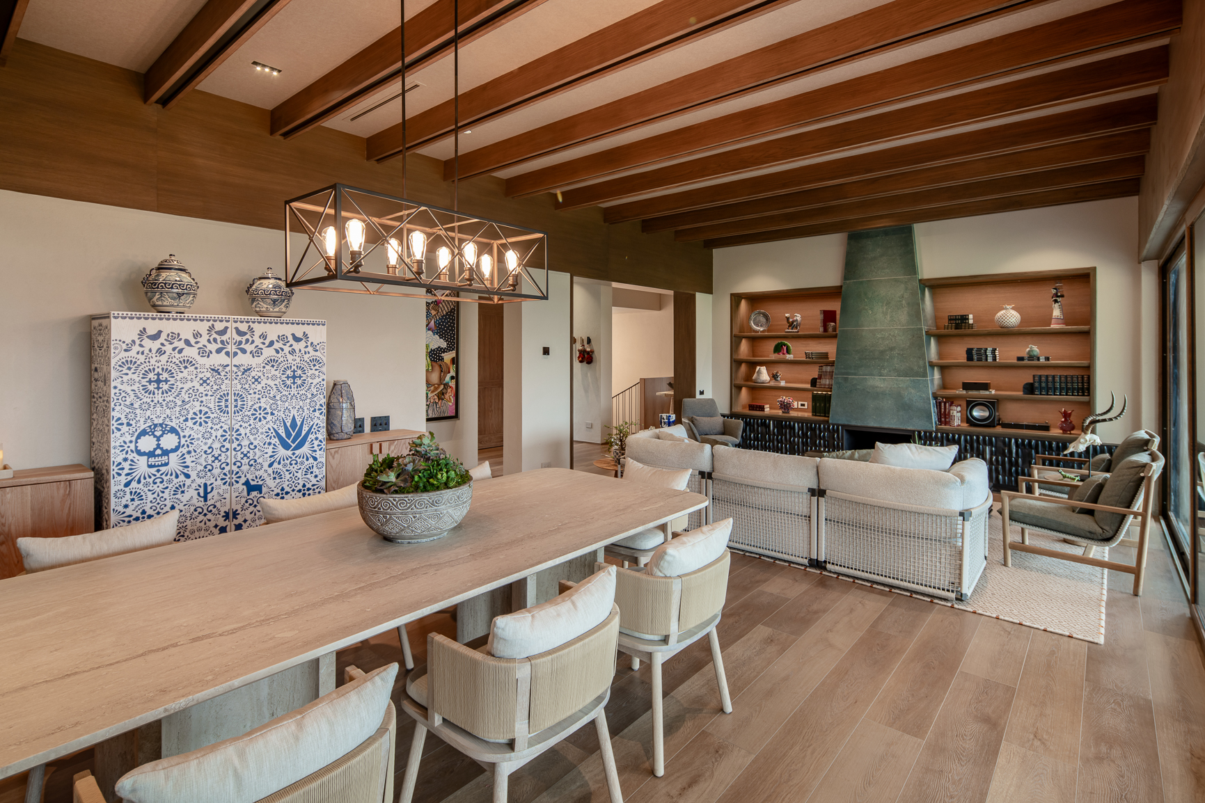 Entre montañas y vegetación abundante, esta residencia en Villa de Santiago —en el corazón de la Sierra Madre Oriental, con la presa de La Boca hacia el norte y la imponente sierra hacia el sur— redefine la esencia de las antiguas casas de campo mexicanas. Construida en 1977, conservaba aún el espíritu de aquella época: pisos de barro, herrería artesanal, espacios sociales en desnivel, azulejos cuadrados hechos a mano, maderas oscuras y mobiliario robusto de madera sólida. El proyecto de remodelación tuvo como objetivo transformar la vivienda en un espacio más luminoso, abierto y funcional, sin perder la calidez que lo distingue. El nuevo diseño reinterpreta el estilo mexicano a través de artesanías contemporáneas de autor y materiales seleccionados con cuidado.
