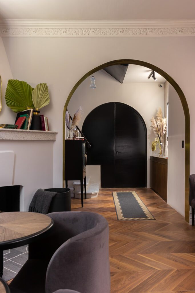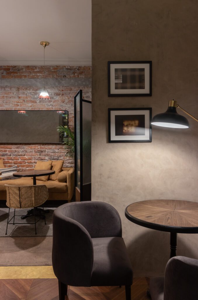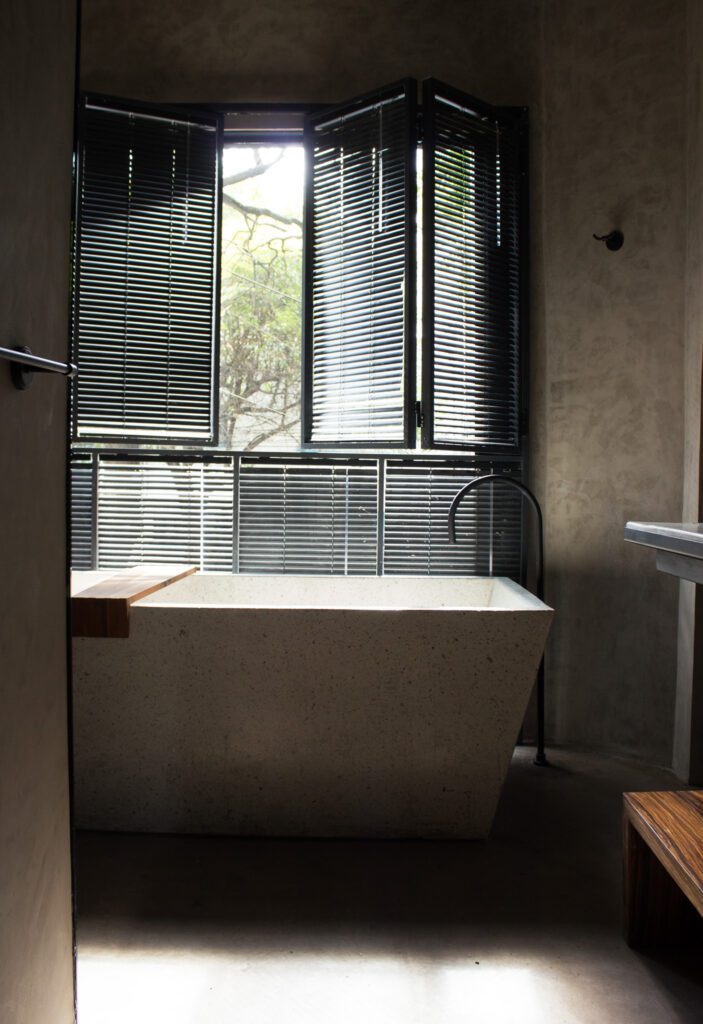 La arquitectura de la casa, una construcción de mediados de los años 40’s, fue el punto de partida. Su carácter ecléctico conserva guiños al colonial californiano y al art decó, elementos que fueron restaurados y reinterpretados para dialogar con materiales contemporáneos como muros y pisos de cemento pulido en tonos neutros. La paleta cromática, de inspiración nostálgica, incorpora acentos vino, mostaza y palo de rosa, aportando profundidad y calidez. El mobiliario, diseñado a la medida, convive con piezas clásicas restauradas, mientras que los espacios funcionan como una galería viva que exhibe obra de artistas y diseñadores mexicanos, lo que refuerza el vínculo con el contexto cultural de la zona. Más que un lugar para hospedarse, Aposento Hotel Boutique es un ejercicio de memoria y emoción: un espacio donde el pasado y el presente se encuentran para contar nuevas historias y donde los sentidos se activan mucho después de haber regresado a casa.