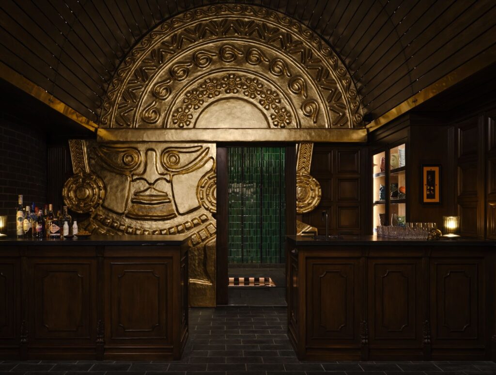 Detrás de una puerta oculta, un bar secreto inspirado en el Perú rinde homenaje a las raíces del propietario. Un mural que evoca Machu Picchu y una monumental figura del Tumi —símbolo de poder ceremonial— marcan la entrada a una gruta spa que parece esculpida por el tiempo. Un santuario de agua y piedra donde el silencio se siente sagrado.