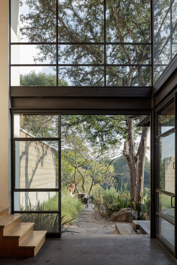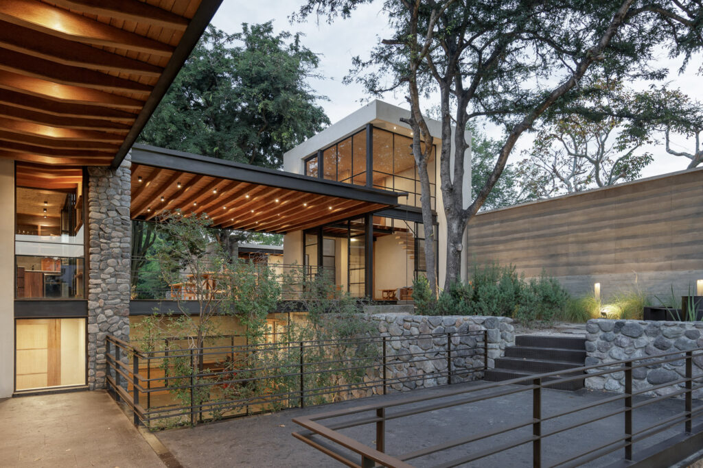 El proyecto responde al terreno fragmentando su programa arquitectónico y adaptándose a la topografía existente. Esta decisión permitió que la residencia se integrara al contexto y que su centro se revelara de forma natural: un imponente cactus órgano rodeado de tamarindos, herencia directa del propio lote. A su alrededor, patios, jardines contenidos y visuales hacia el río y la cañada construyen una secuencia espacial que cambia con cada recorrido. Disolver el límite entre interior y exterior fue el concepto rector. Materiales, colores y texturas del entorno se integran a la arquitectura, permitiendo transiciones continuas entre ambos ámbitos. Caminar descalzo sobre el piso de piedra natural refuerza esta sensación, mientras la luz, la temperatura y las superficies activan una experiencia sensorial completa.