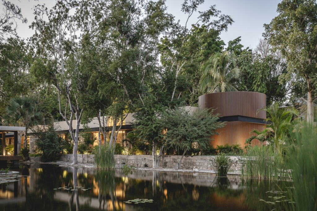 Como complemento arquitectónico destacado, la hacienda alberga un spa de 530 m² que emplea cuatro elementos arquitectónicos clave: estructura metálica organizadora, volúmenes de piedra regional y chukum, losa en voladizo para protección climática, y un módulo cilíndrico que introduce geometría distintiva.