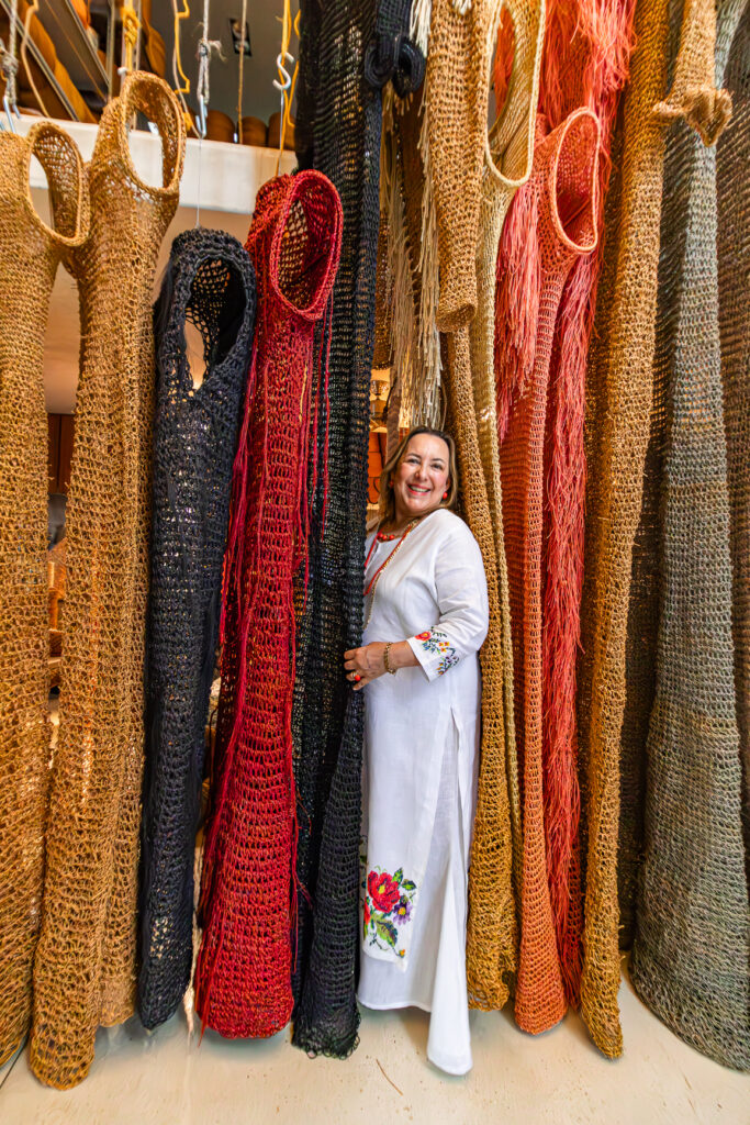 Con más de veinte años de trayectoria, la artista yucateca Marcela Díaz ha construido un lenguaje propio a través de fibras naturales como el henequén, el coco y el algodón. Estos materiales, profundamente vinculados con la memoria y el paisaje del sureste mexicano, le permiten explorar temas como la identidad, el territorio y la historia personal.