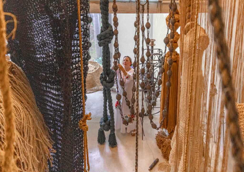El universo creativo de Marcela se teje como sus esculturas: entre fibra, gesto y tiempo. Hoy abre las puertas no sólo a su obra, sino al espacio íntimo donde ésta nace.