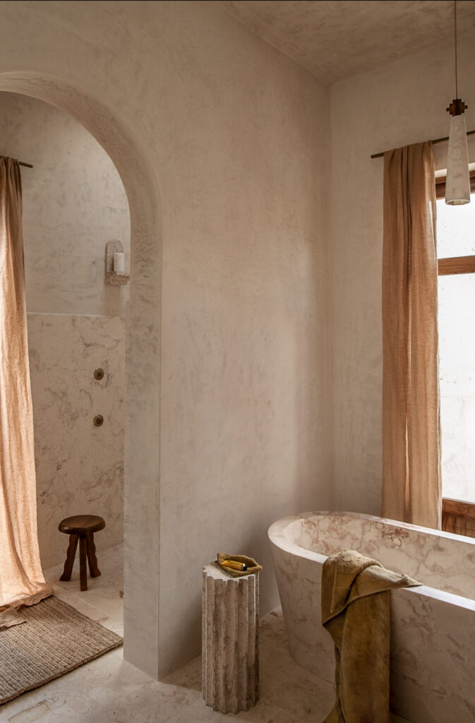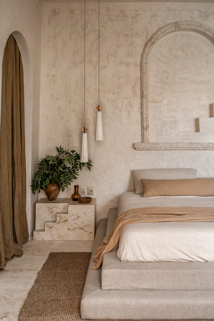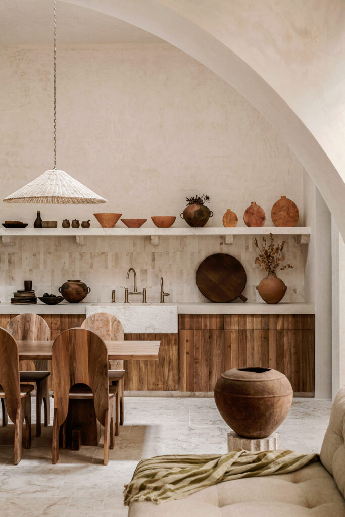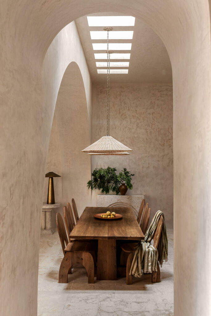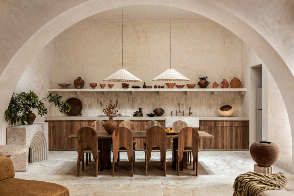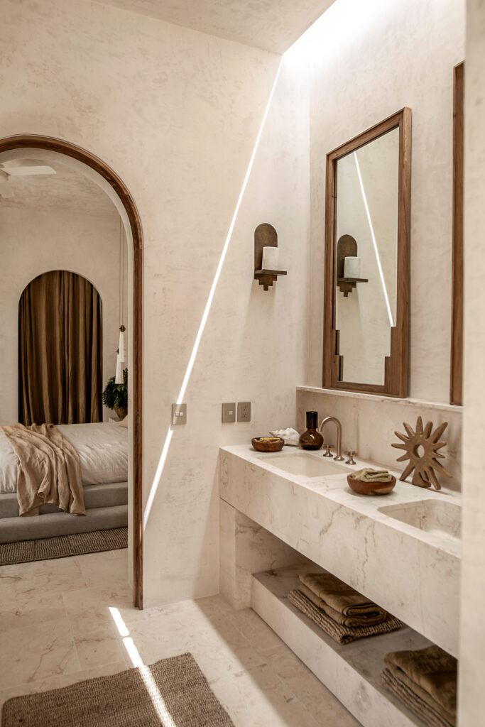 El proyecto combina con naturalidad el espíritu local con una sutil influencia mediterránea, presente en el uso de arcos, la conexión fluida entre interior y exterior, y una paleta de materiales que celebra la calidez y la textura. Esta filosofía de integración reduce la huella de transporte al emplear recursos de la región, generando una arquitectura que pertenece genuinamente a su lugar.