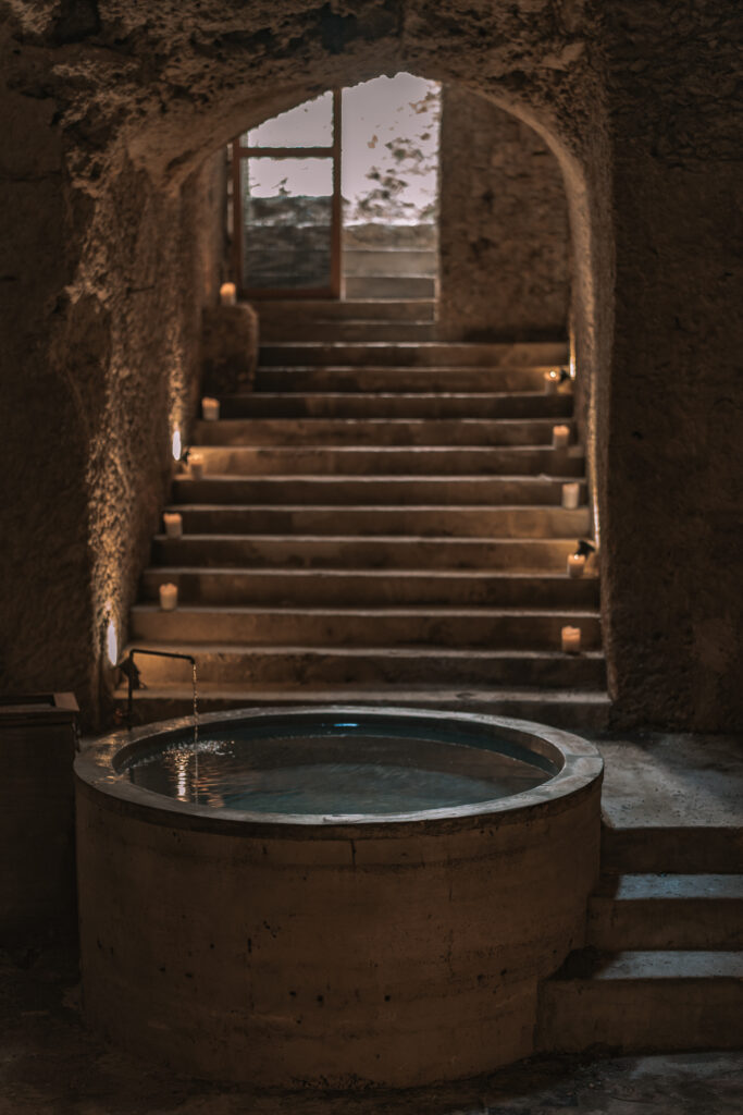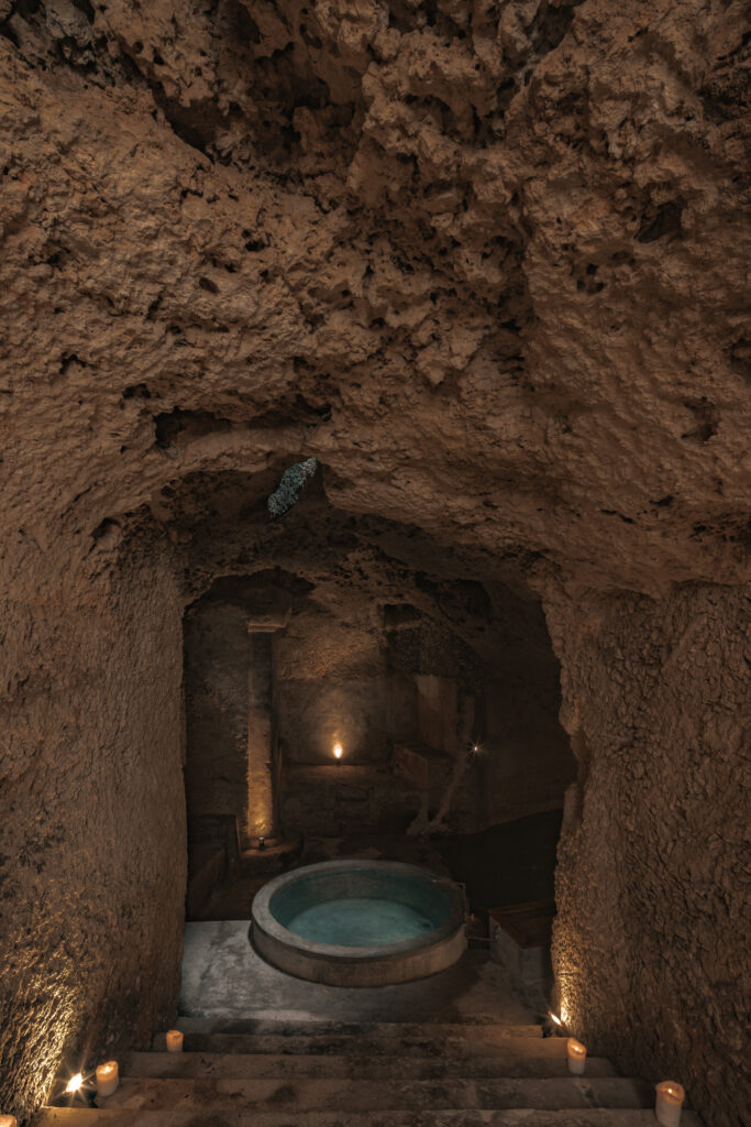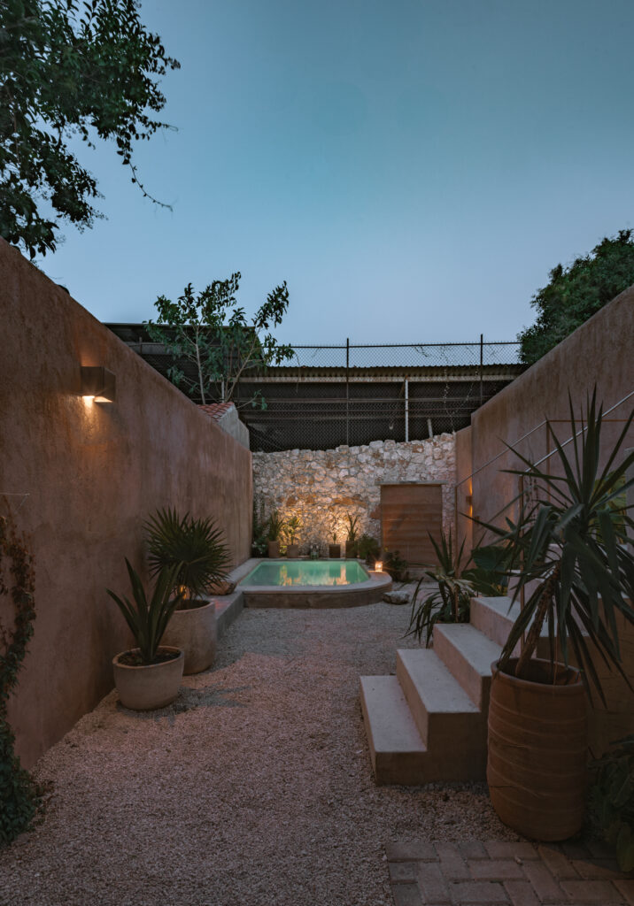 Portal 62 es un ejemplo de cómo un hallazgo inesperado puede transformar por completo la concepción de una vivienda, dando lugar a un proyecto íntimo, reducido y profundamente conectado con lo que yace bajo la superficie. Durante la limpieza del sitio, un pozo sellado reveló poco a poco su historia: una escalinata interrumpida, un muro improvisado y, detrás de él, una caverna oculta bajo escombros. Desde ese hallazgo, la vivienda dejó de ser un proyecto convencional para transformarse en una experiencia arquitectónica subterránea. Con apenas 70 m² construidos, la casa se desarrolla en secuencia: una crujía original alberga cocineta, estancia y comedor; un volumen nuevo añade dos habitaciones —una en planta baja y otra en planta alta— y se detiene justo en el umbral de la cueva, límite natural que dictó proporciones y escala. El recorrido propone un juego de tensiones, ya que al salir de la estancia, un pasillo angosto conduce hacia el patio posterior, donde la piscina se enmarca con un muro de tapial que filtra la vista y anticipa la conexión con lo subterráneo. A un costado, una escalera desciende hacia una tina artificial diseñada bajo el pozo original, donde la luz natural cae directa sobre el agua y transforma el ambiente en un espacio íntimo, húmedo y silencioso.